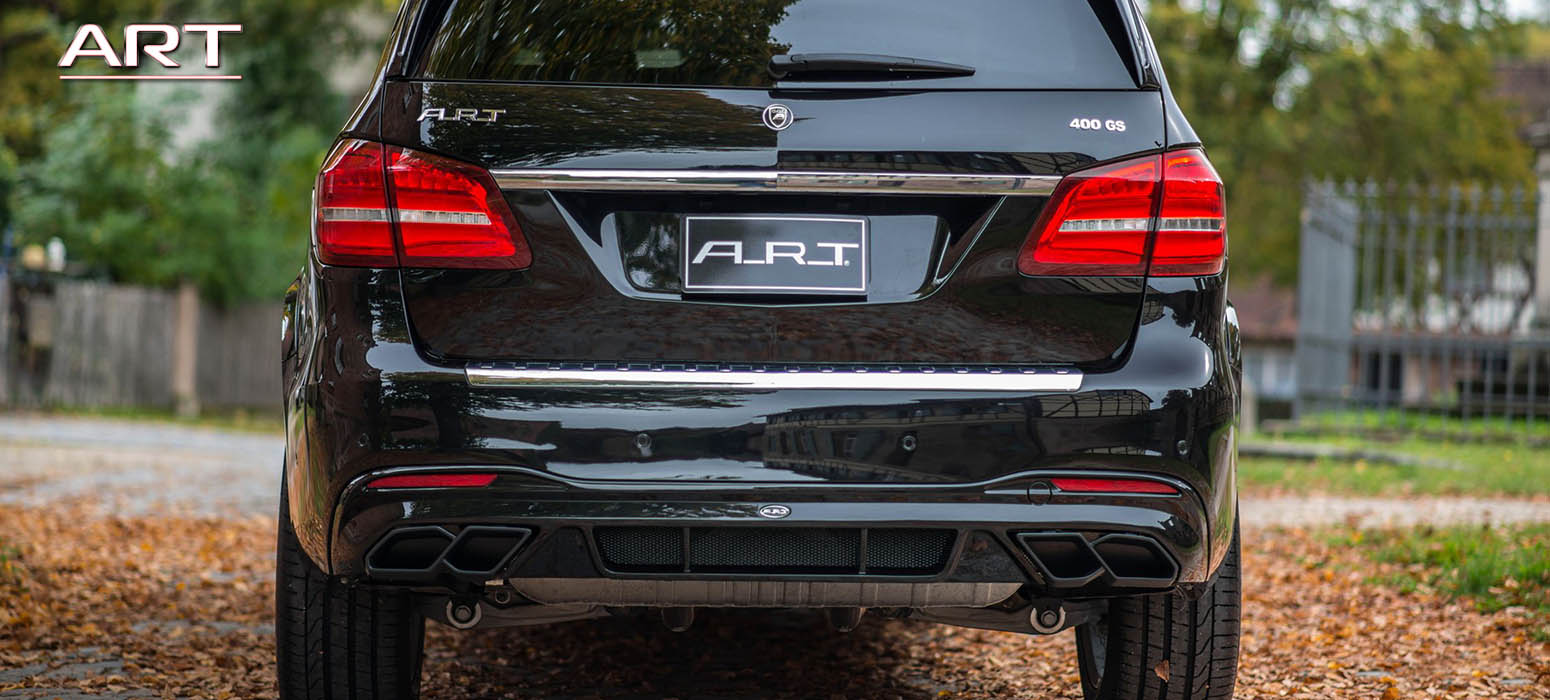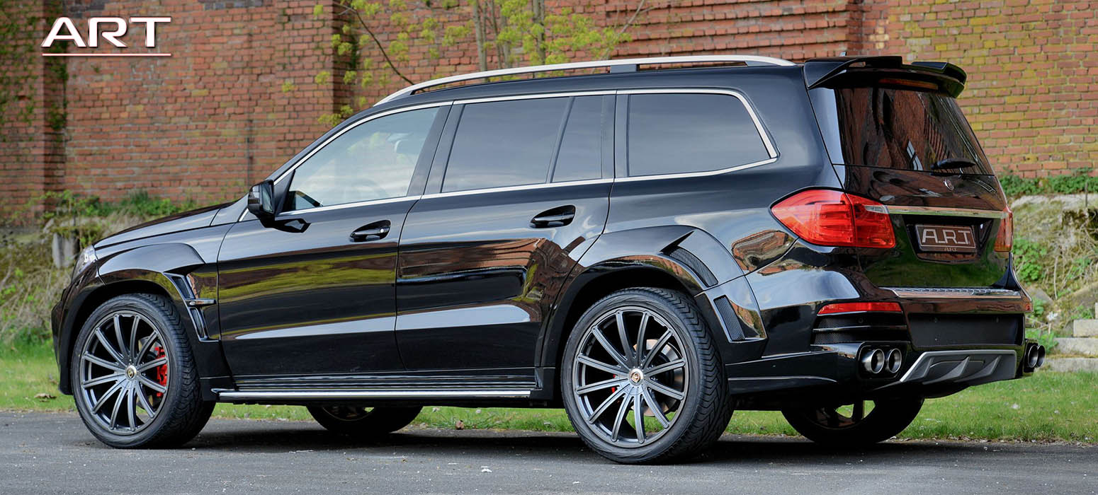 Фирма ART, известная своим многофарным тюнингом Гелендвагена, тоже предлагает аэрокиты для моделей GL и GLS X166. Для GL-а есть большой обвес Mammut 2, а для GLS все ограничивается накладками на штатные бампера от AMG-пакета.