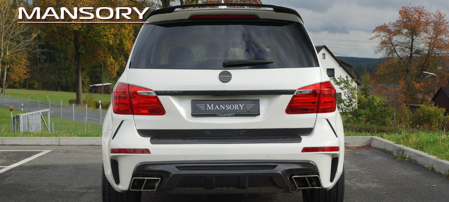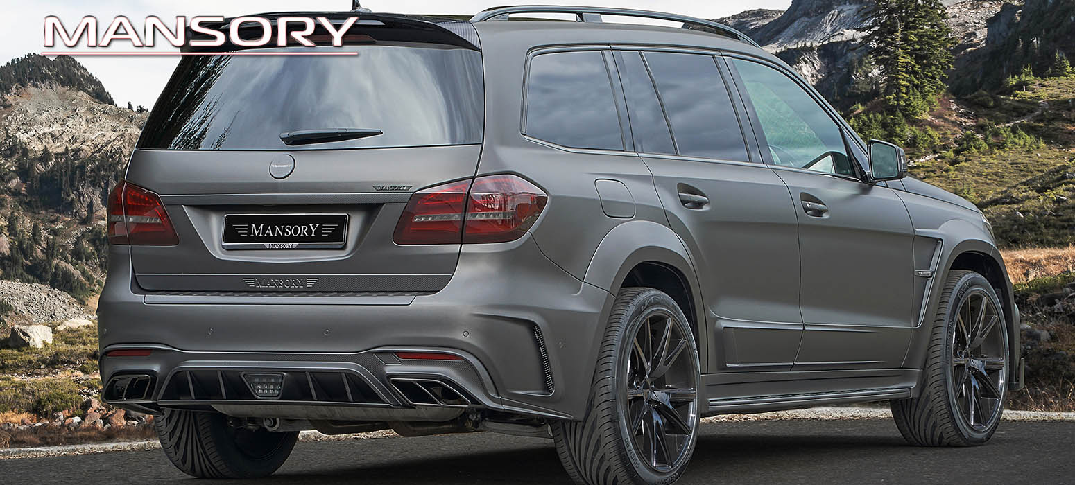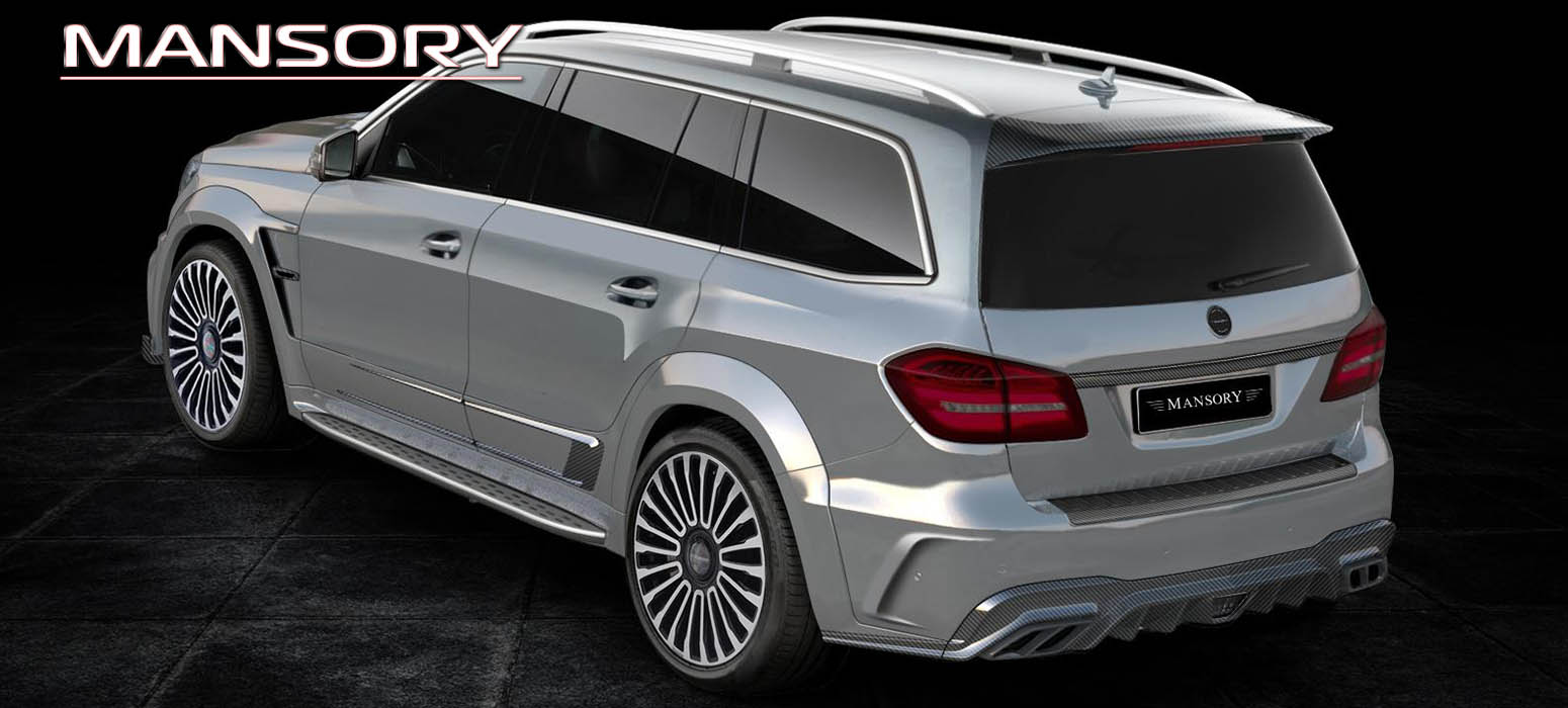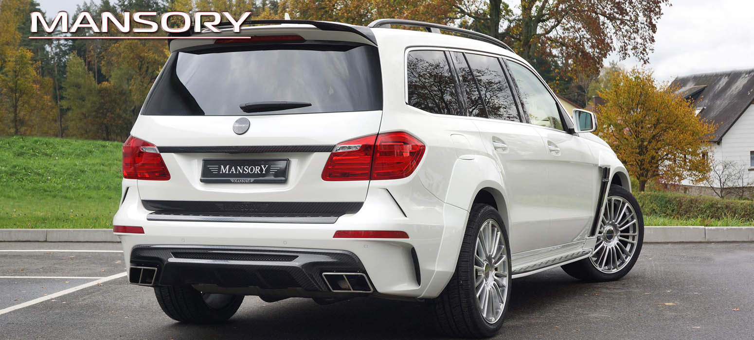 Mansory предлагает для GL166 полный обвес из двух бамперов, расширителей арок, решетки радиатора, спойлера на крышу, есть даже капот! При этом дизайн достаточно приятный. Для модели GLS, к обвесу добавились накладки на двери, а передний бампер заменен на дополнительные элементы для штатного бампера 6.3 AMG.