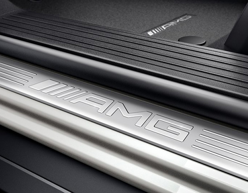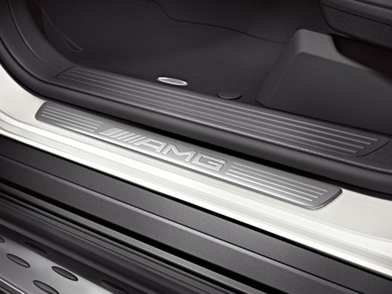 Внутренние пороги с подсветкой от бренда AMG - это стильный аксессуар для дополнения образа. Они хорошо впишутся в интерьер, а подсветка добавит салону привлекательности.