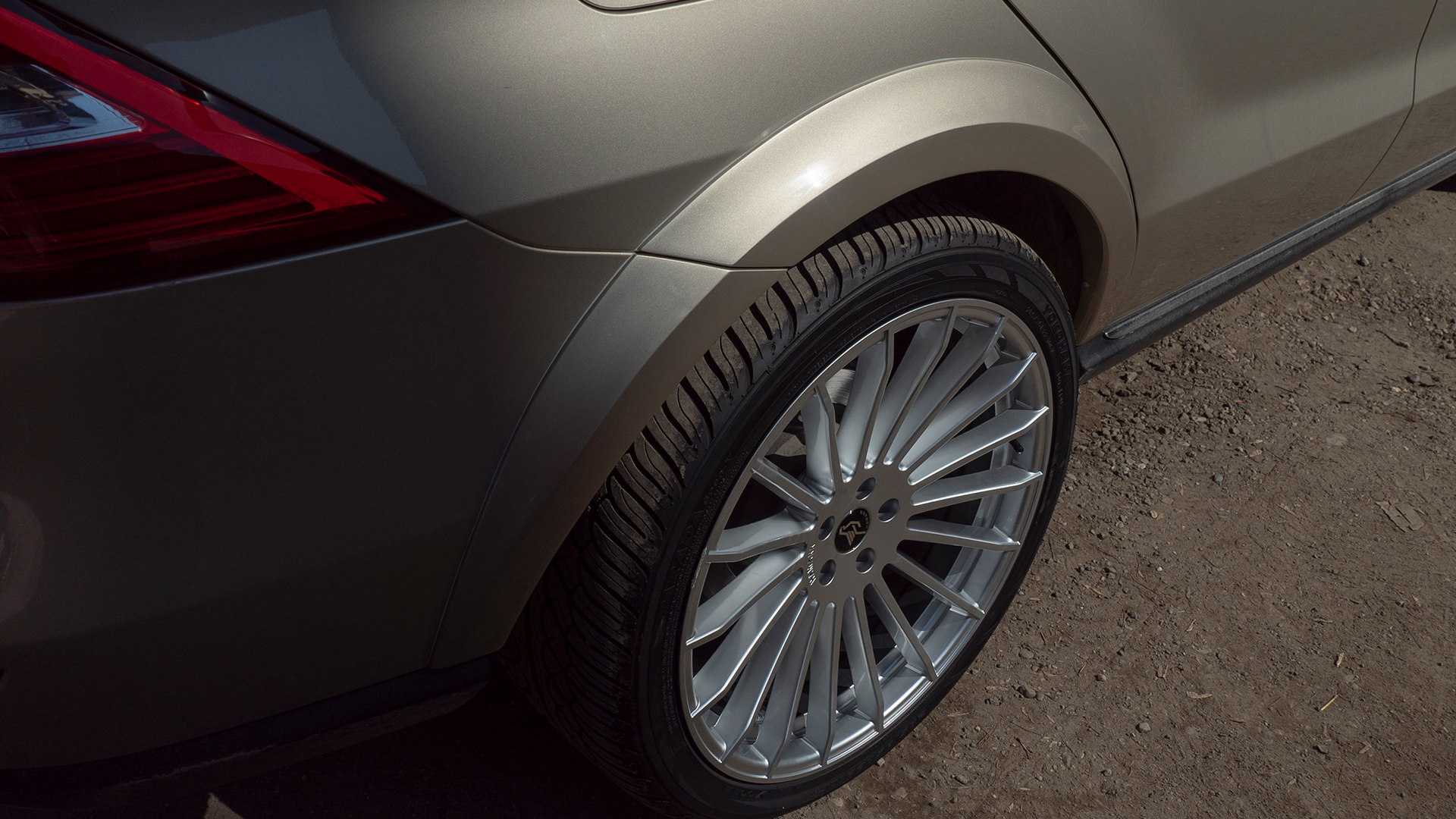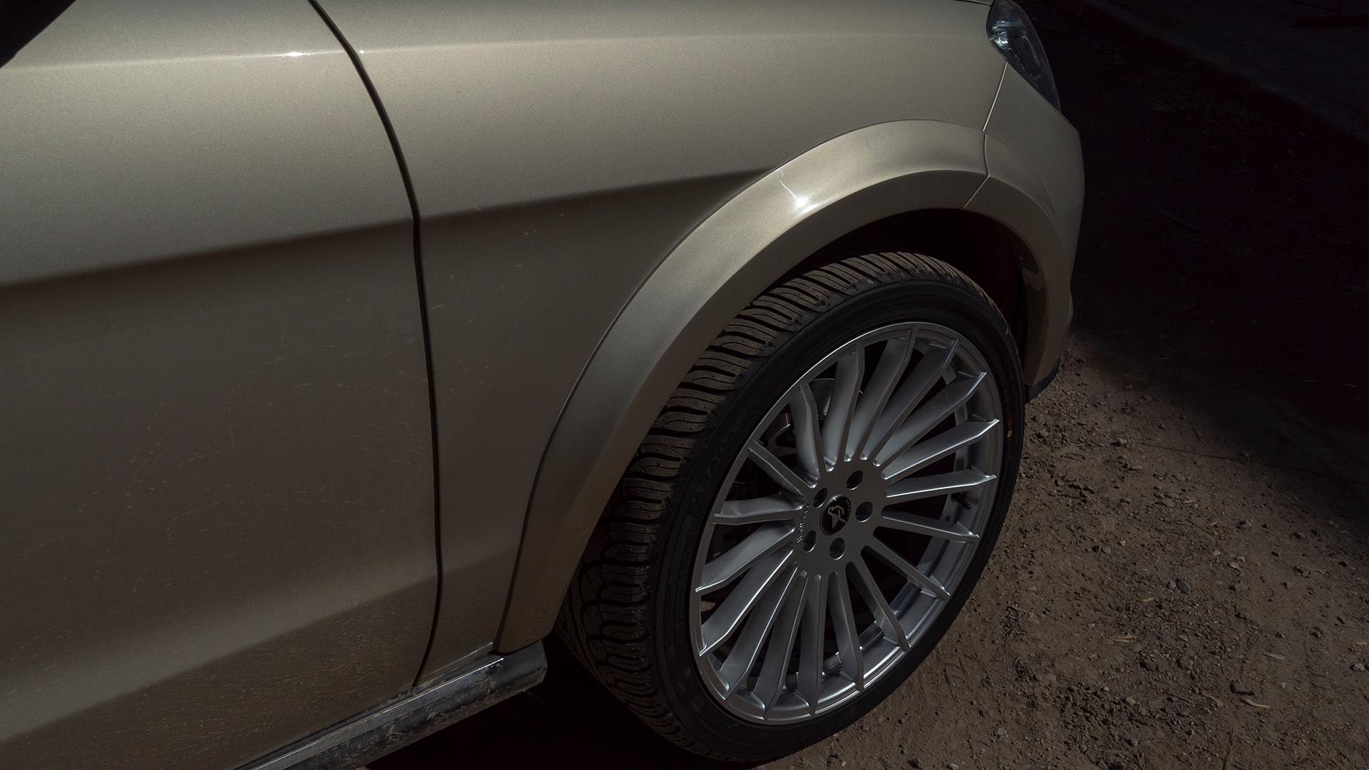 Хозяину этого автомобиля очень понравились диски Hamann 22-го диаметра, но они сильно выступали из крыльев и автомобиль сильно пачкался. Как решение проблемы мы предложили установку расширителей в стиле Vath. Получилось идеально - не понадобились даже проставки.