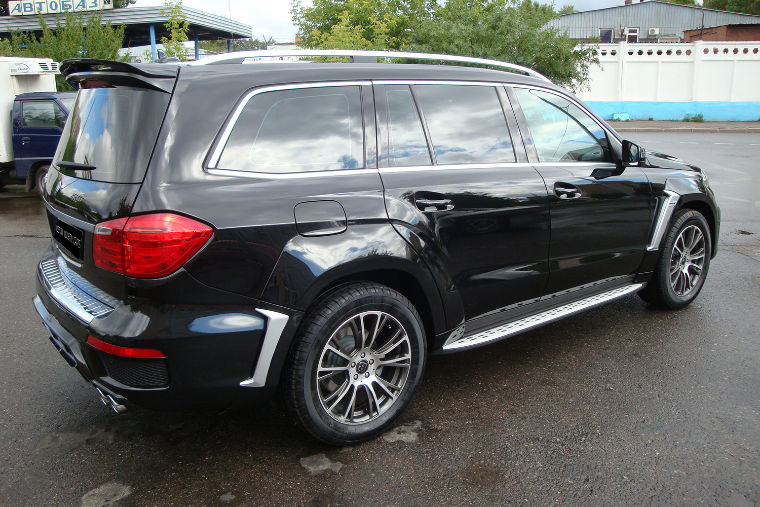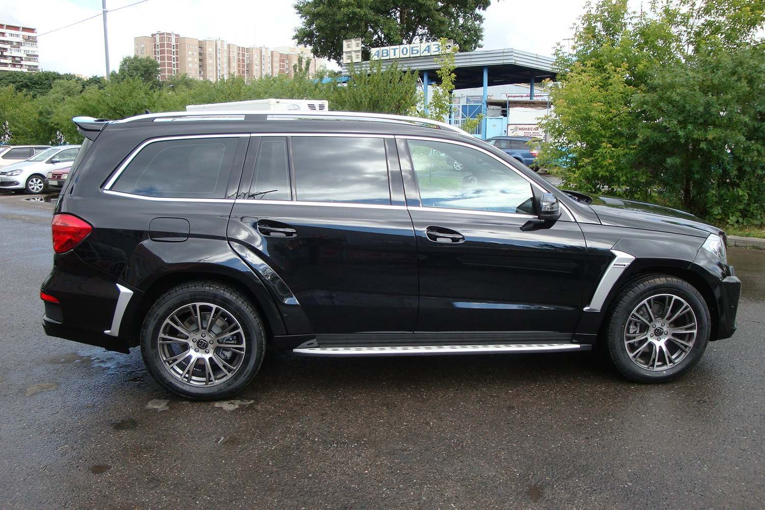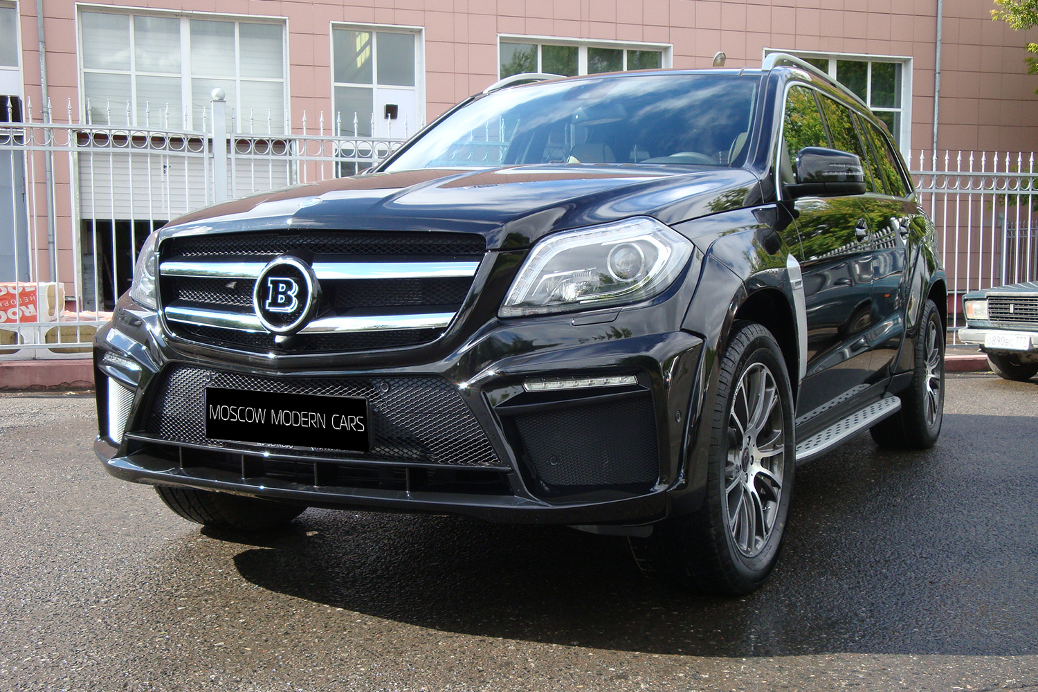 Mercedes GL400 2014 г.в. На автомобиль установлен комплект аэродинамических элементов Brabus WIDESTAR и прямоточный глушитель в стиле Brabus. Произведена доработка интерьера с пользованием аксессуаров с логотипами Brabus.
