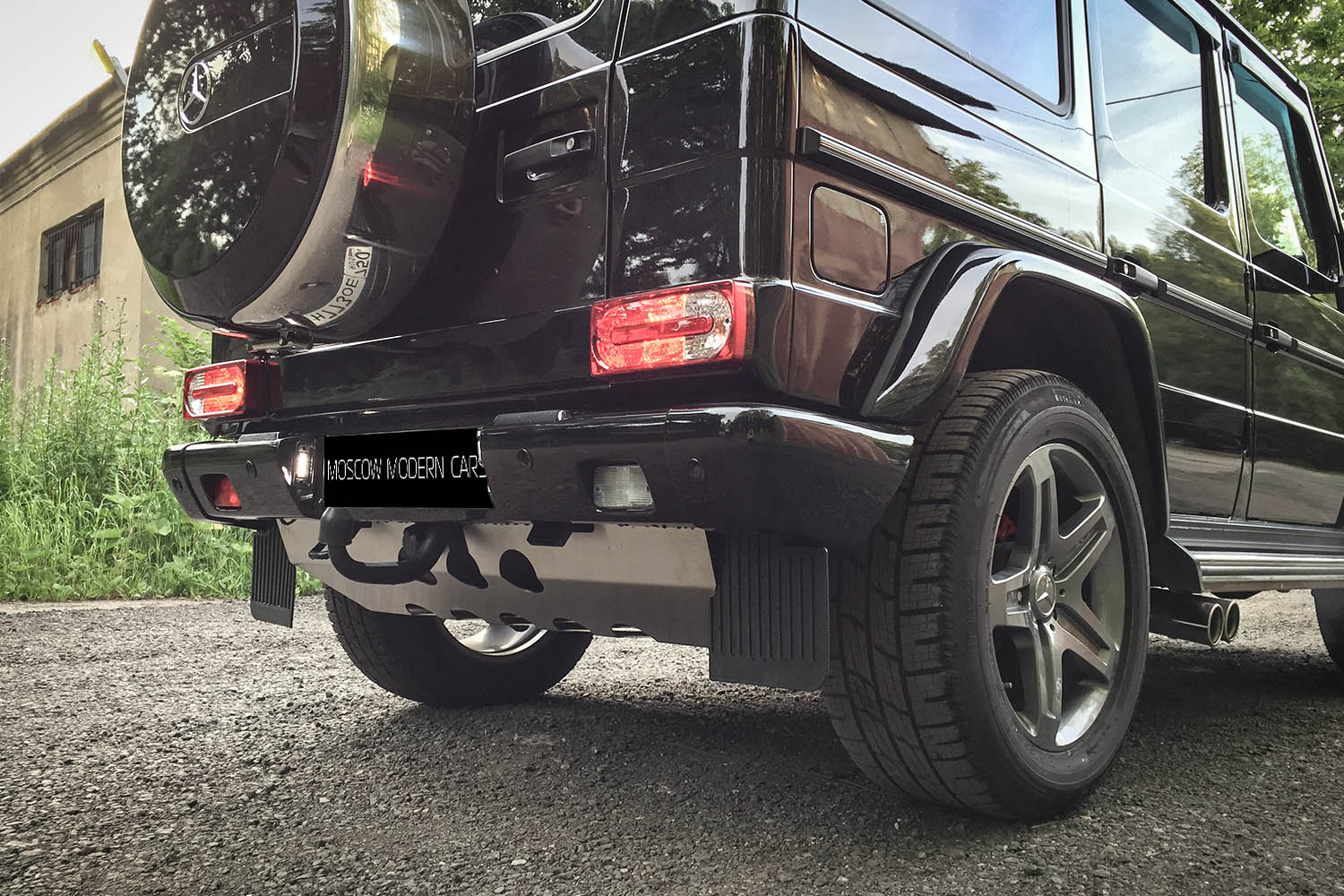 На автомобиль установлена наша выпускная система с разведением выхлопных газов на обе стороны машины и сохранением штатного нейтрализатора и впрыска мочевины. Для придания звучания выхлопу, установлена система активного звучания с управлением со смартфона. Для легкого изменения внешнего вида, на машину установлен спойлер на крышу, индивидуальные насадки на глушитель из полированной нержавеющей стали и окрашены суппорты тормозной системы в красный цвет.