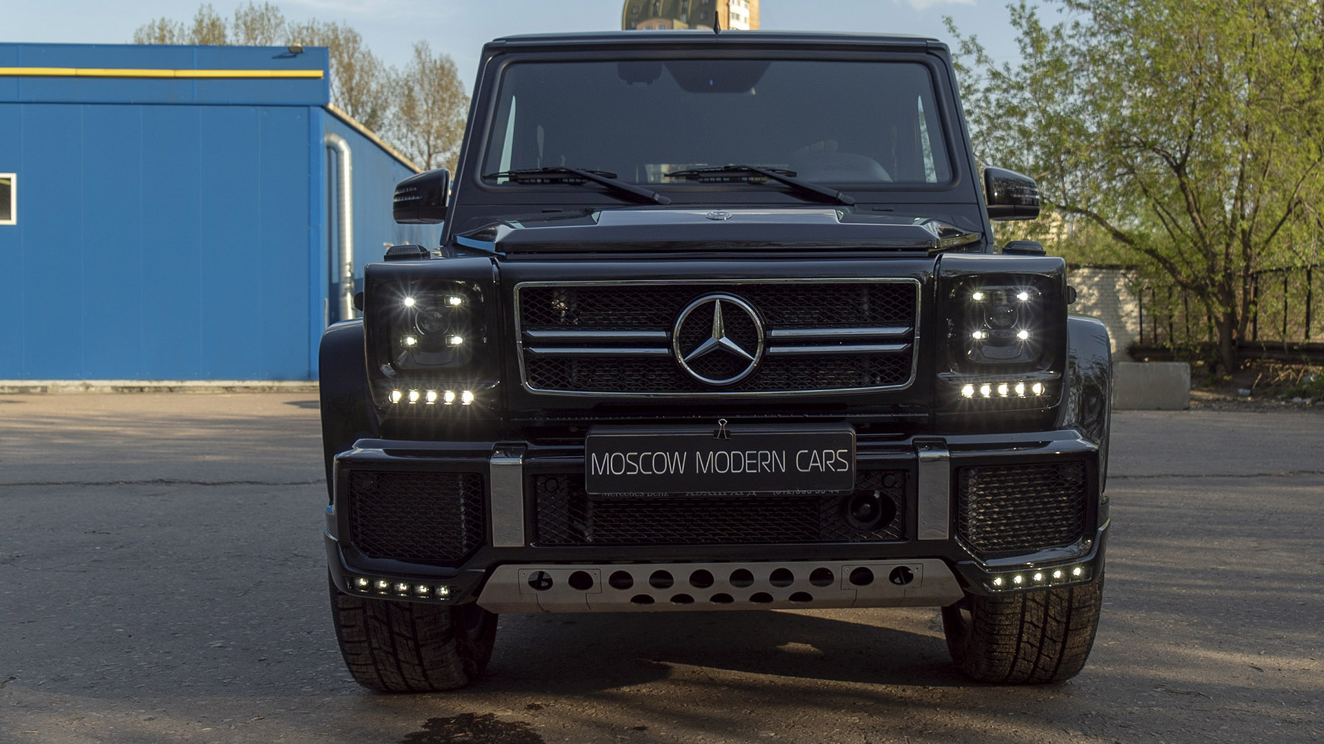 Автомобиль решено было сделать по индивидуальному проекту, не привязываясь к какому-либо определённому стилю. Основными акцентами во внешнем виде стали передняя и задняя защиты из шлифованной нержавейки и квадратные фары Red Star. Задний бампер заменён на брабусовский, он имеет более свежий дизайн. Также установлена наша выхлопная система с разводкой на две стороны и с сохранением нейтрализатора для Ad Blue, а подножки окрашены в чёрный цвет.