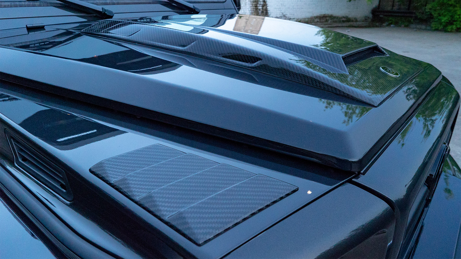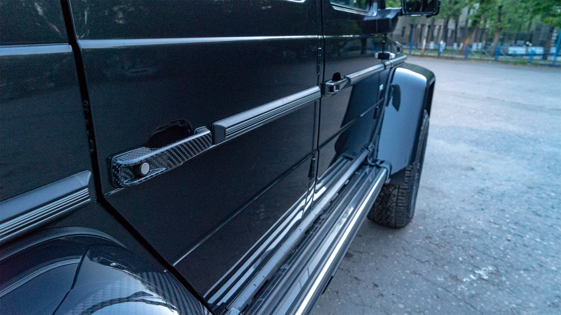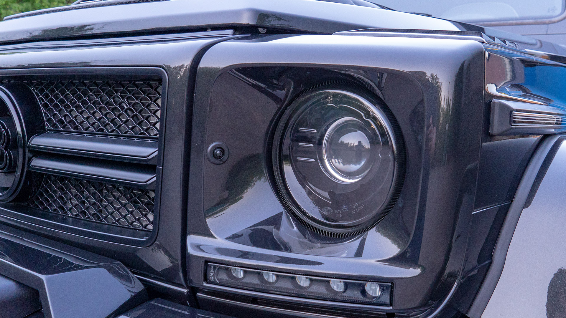 Основной целью преобразования внешности этой машины было получить более напористый и злой образ от Brabus. Помимо внешних переделок, на автомобиль установлен мощностной кит от Brabus поднявший мощность мотора до 500 л.с. Моторный отсек также доработан по стилю Brabus. Power-kit дополняет выхлопная система Brabus с переключением громкости звука. Для удобства входа-выхода мы установили электрические подножки Brabus. В салоне также установлены приятные аксессуары в виде доработанного щитка приборов, светящихся порогов, накладок на педали и ручки АКПП. Так как модель 4Х4 не оснащается парковочными радарами, было принято решение оснастить машину камерами кругового обзора для удобства при маневрировании на парковках. Штатные диски мы окрасили в чёрный матовый цвет и вставили в них колпаки Brabus. Карбоновые аксессуары снаружи машины также привлекают внимание.