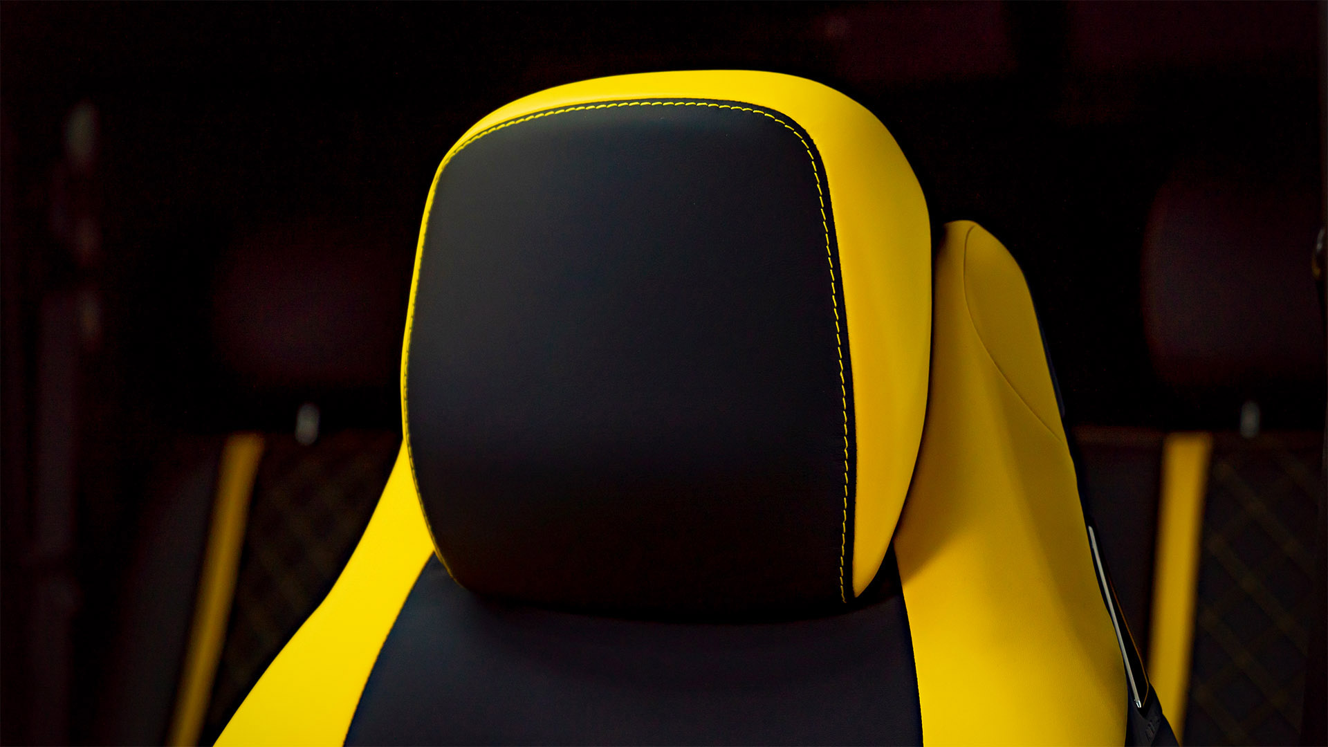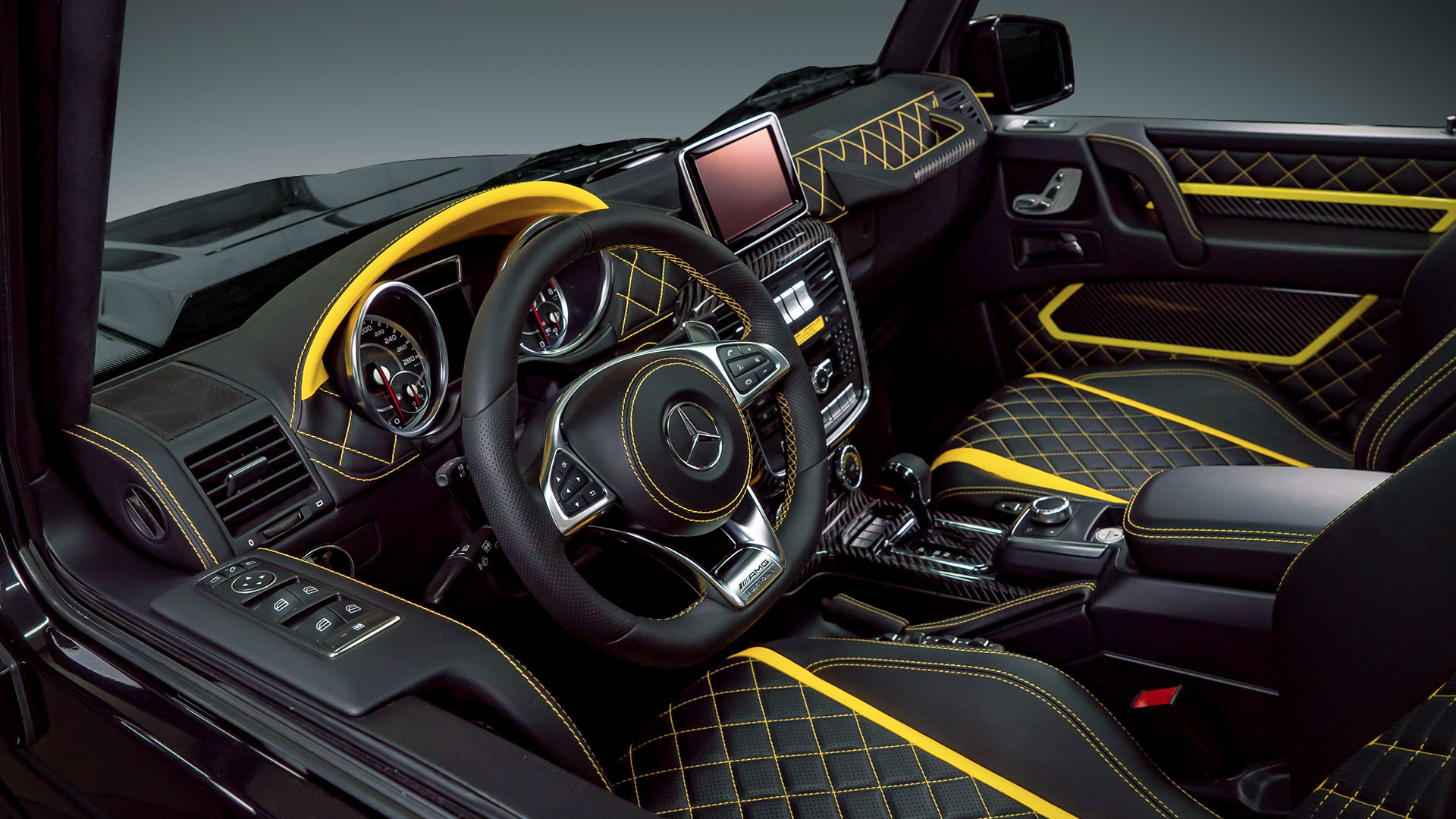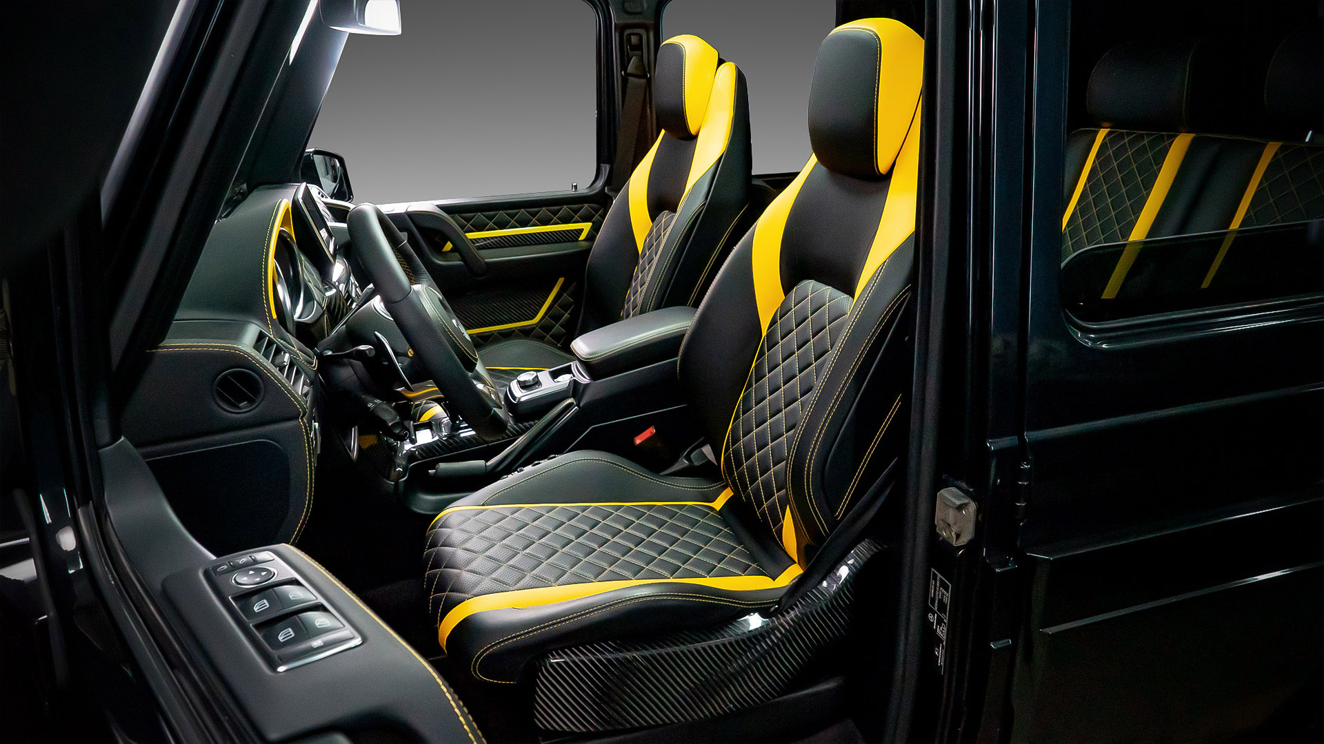 Это второй автомобиль, в котором мы произвели рестайлинг салона в 2013 модельный год. В отличии от первой машины, мы не меняли торпедо целиком, а переделали старую деталь в новый дизайн. Также, заказчик не захотел устанавливать сервопривод АКПП, поэтому кулиса осталась механической, но мы элегантно вписали ее в дизайн новой центральной консоли. Помимо переделки торпедо и замены центральной консоли, мы заменили ручку на водительской двери на новую, со встроенным блоком клавиш стеклоподъемника и врезали кнопку центрального замка в обшивку двери, как у новых машин. Передние кресла мы установили от E-класс Купе W207 и перешили их в новый дизайн. В дверях мы сделали карбоновые вставки с контрастным кантом, остальная отделка деревом в салоне также переделана на карбон. Джойстики управления передними сиденьями мы заменили на совсем новые, как у Гелендвагена 2018 года. Руль с обогревом от AMG GT.