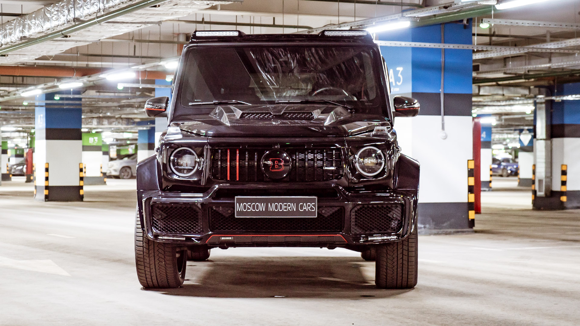 При постройке этой машины стояла задача сделать максимально броский автомобиль. Для этого мы использовали расширенную отделку карбоном twil 4x4 для большого количества внешних элементов: зеркала, элементы переднего и заднего бамперов, дефлекторы на задних стойках кузова, "жабры" на передних и задних арках обвеса, все молдинги по периметру кузова, накладка на капот и даже насадки на глушитель. Сам обвес был идеально подогнан на автомобиль и после этого окрашен. В решетку радиатора установлена эмблема с красным логотипом, так как в дополнение к карбону мы нанесли красные полосы на многие внешние элементы. На крыше установлена люстра с дополнительным дальним светом и спойлер Brabus в новом дизайне. На все двери установлены доводчики. Из эксклюзивных элементов мы разработали и установили накладку на верхнюю часть решетки радиатора и масок фар. Сейчас этот автомобиль обитает во Владивостоке.