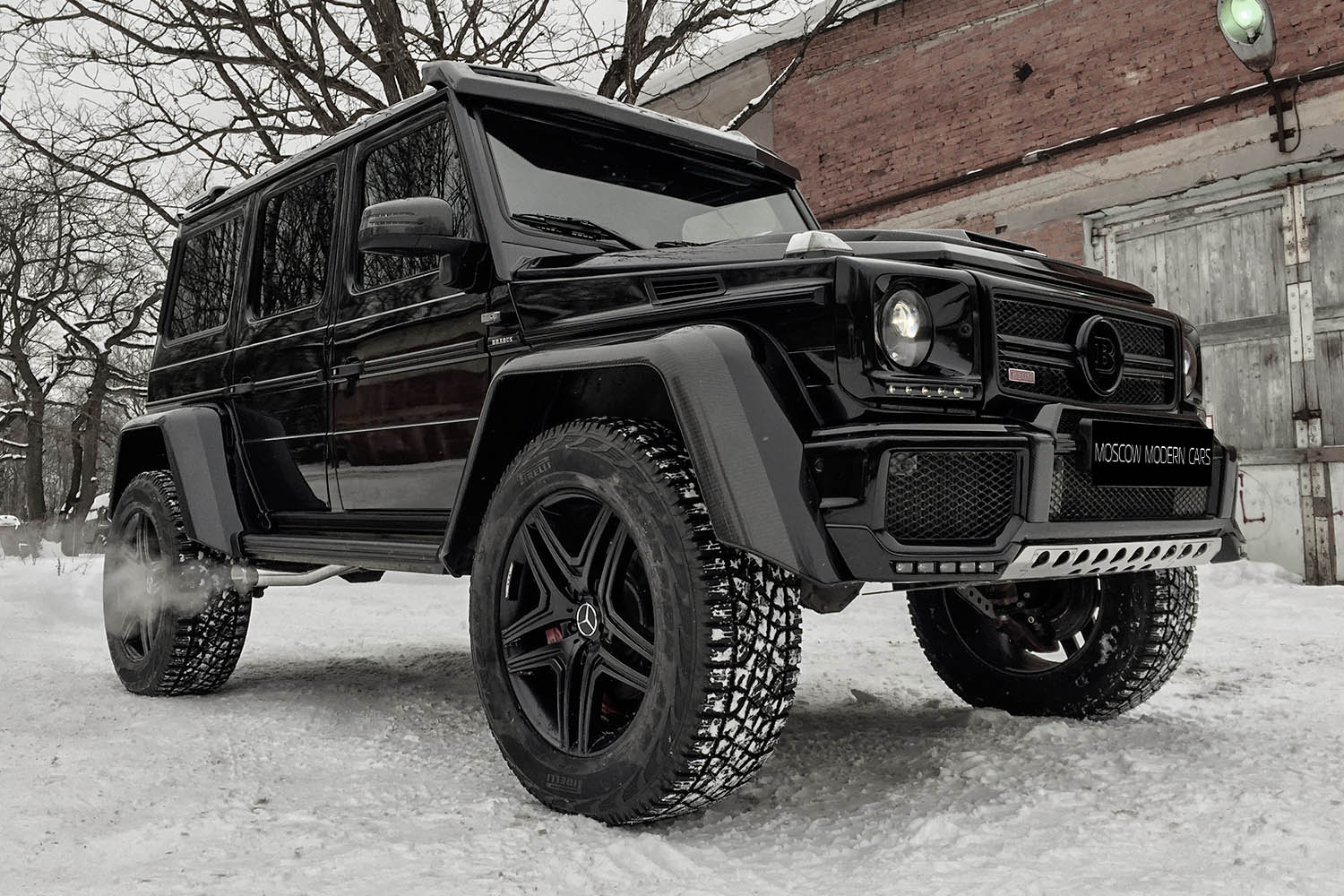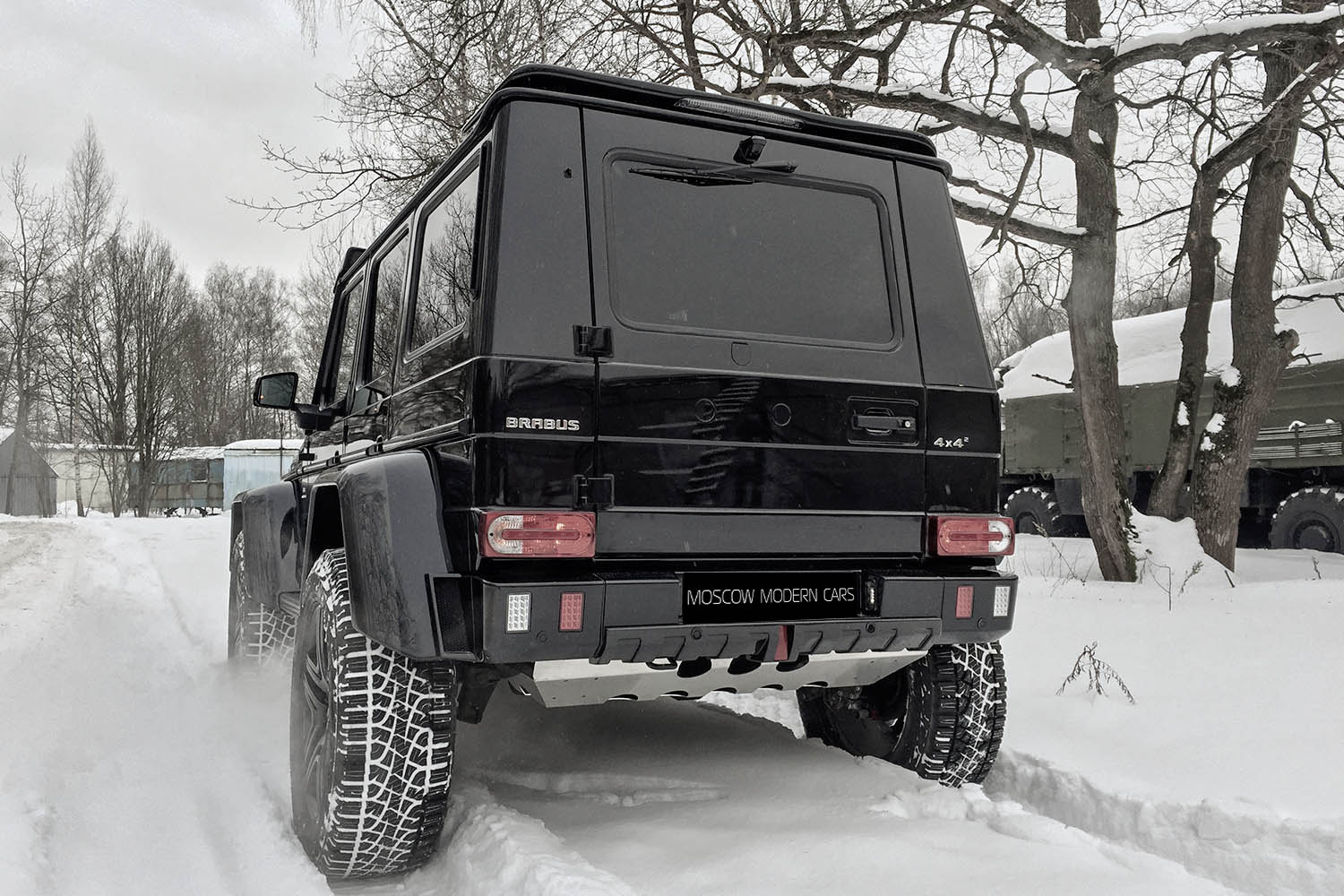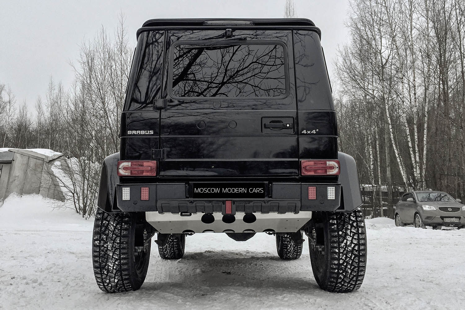 Автомобиль переделан под заводскую версию 4х4 "в квадрате" с добавлением стайлинга Brabus. На машине установлены портальные колесные редукторы и колеса, соответствующие модели 4×4². Также, добавлены внешние элементы стайлинга 4×4²: козырёк из карбона над лобовым стеклом, защита двигателя и бензобака из нержавеющей стали, расширители арок из карбона, проставки под зеркала заднего вида и боковые повторители поворота. Для перевоплощения машины в вариант от Brabus, установлена карбоновая накладка на капот, накладки с ходовыми огнями на передний бампер, выхлопная система с изменением громкости звука, задний бампер в стиле Brabus для модели 4×4². Также на машине убран весь хром и установлена зачерненная фронтальная оптика.