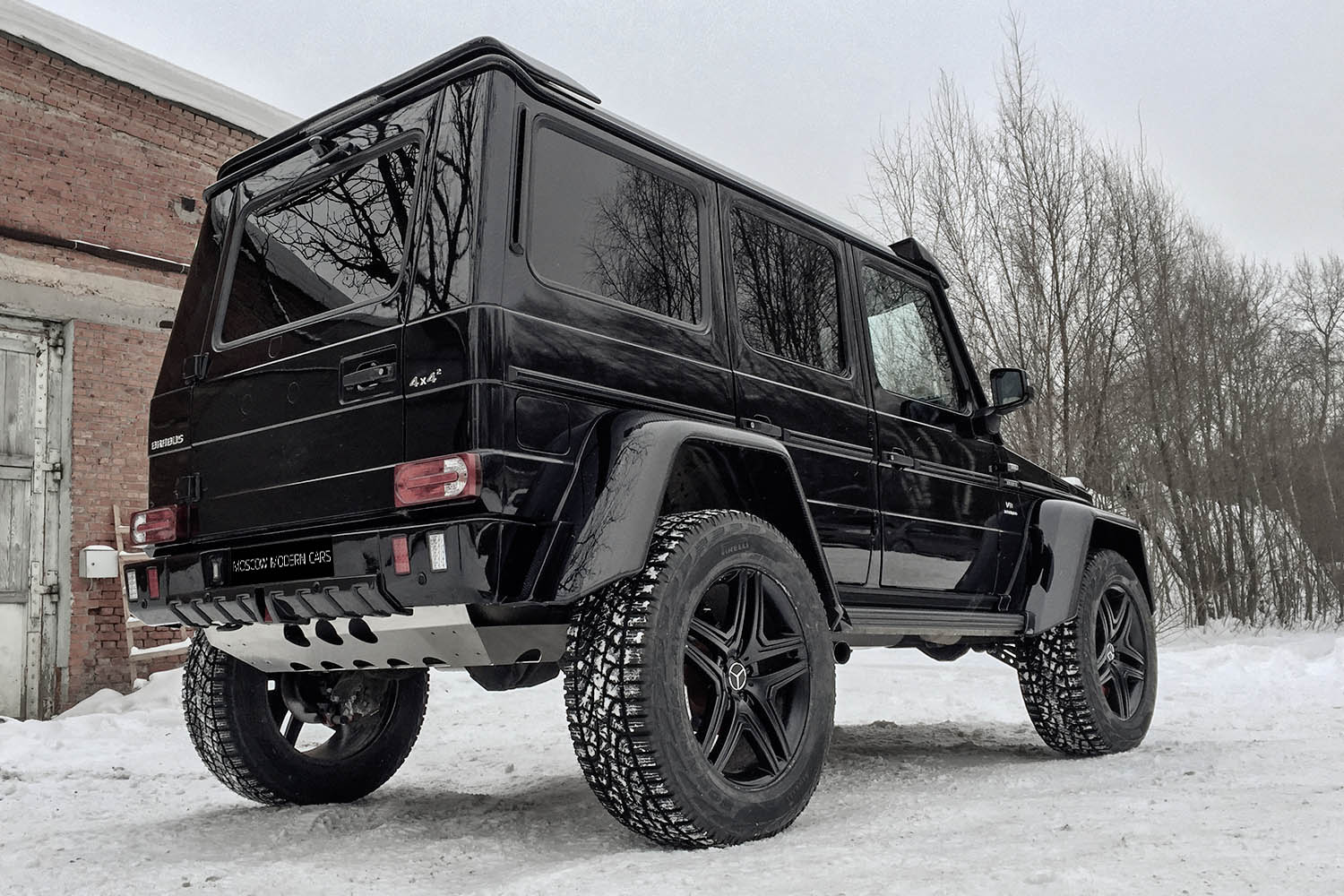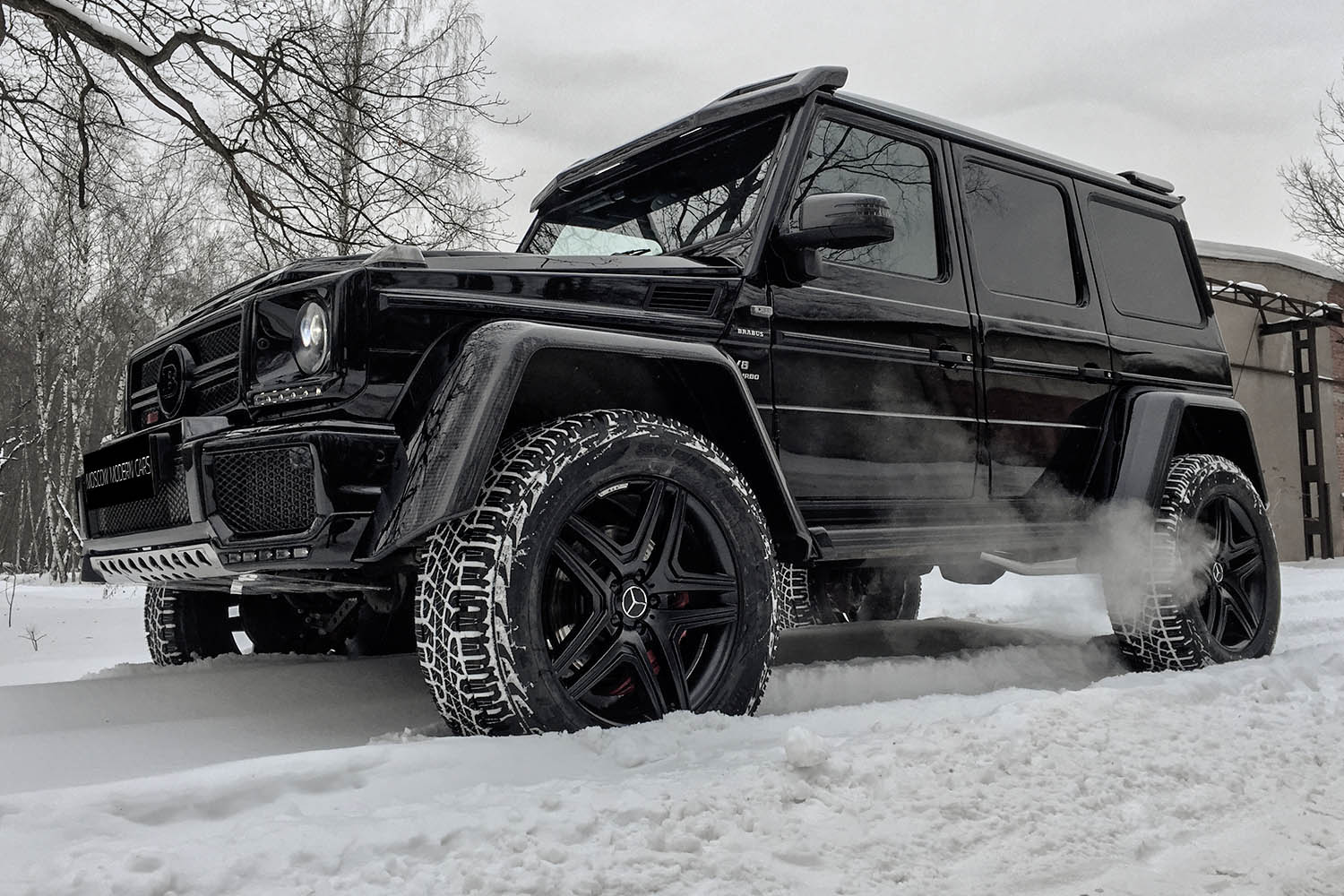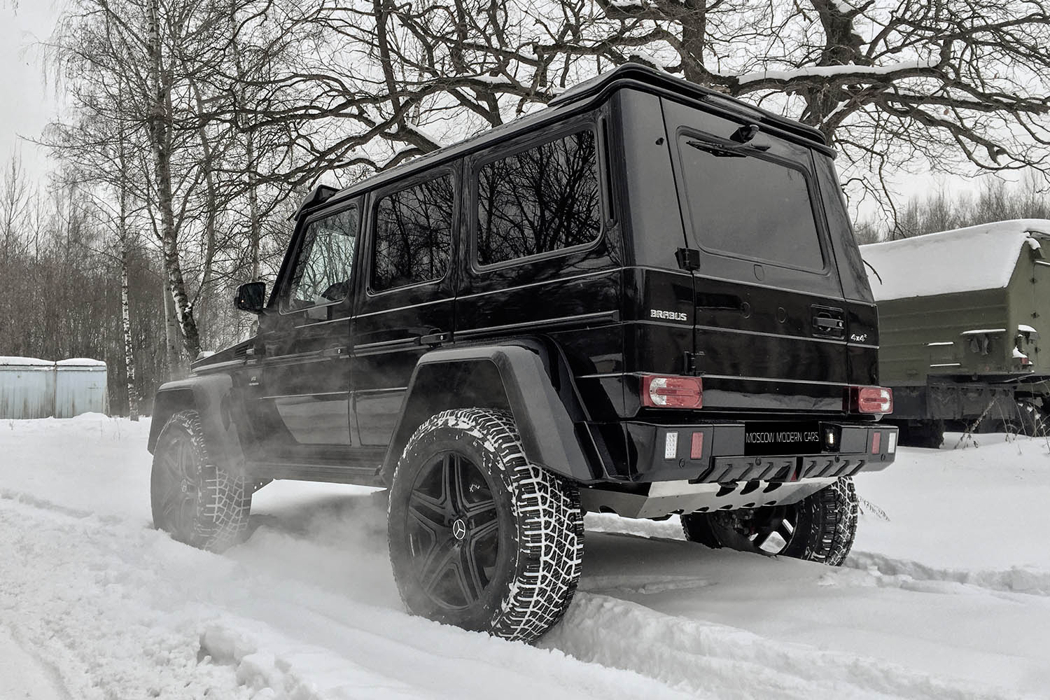 Автомобиль переделан под заводскую версию 4х4 "в квадрате" с добавлением стайлинга Brabus. На машине установлены портальные колесные редукторы и колеса, соответствующие модели 4×4². Также, добавлены внешние элементы стайлинга 4×4²: козырёк из карбона над лобовым стеклом, защита двигателя и бензобака из нержавеющей стали, расширители арок из карбона, проставки под зеркала заднего вида и боковые повторители поворота. Для перевоплощения машины в вариант от Brabus, установлена карбоновая накладка на капот, накладки с ходовыми огнями на передний бампер, выхлопная система с изменением громкости звука, задний бампер в стиле Brabus для модели 4×4². Также на машине убран весь хром и установлена зачерненная фронтальная оптика.