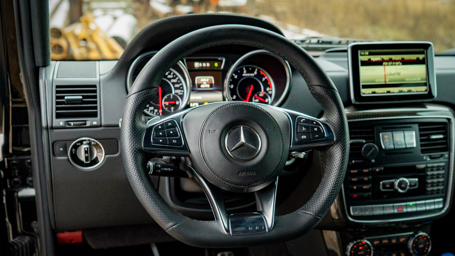 Эту машину требовалось лишь слегка выделить из потока, поэтому выбраны были неброские, но характерные элементы внешнего тюнинга: ходовые огни на передний бампер, "люстра" с диодами на крышу, накладка на капот и выхлопная система от Brabus. Все детали окрашены в цвет кузова в нашем малярном цеху и аккуратно установлены нашими сборщиками. Глушитель Brabus установлен вместо штатного, переключение громкости выполняется штатными кнопками на руле. Кстати о руле, его мы заменили на AMG версию от S-coupe C217.