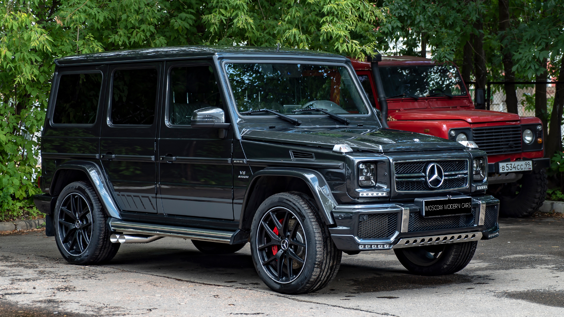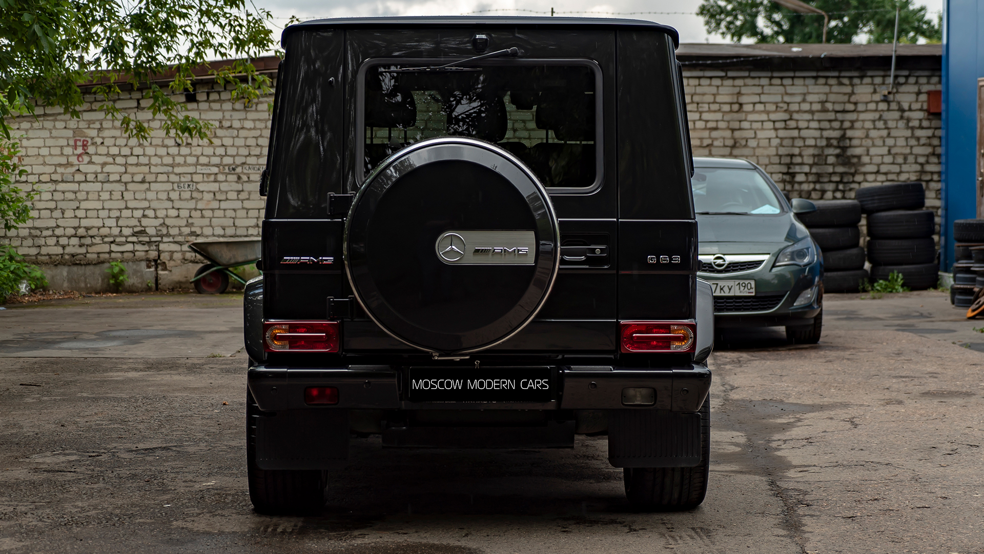 Это заводская версия G63 AMG Edition 463, которую мы подвергли совсем небольшой доработке. Штатные фары заменили на квадратный вариант от Red Star, установили выхлопную систему и ходовые огни Brabus.