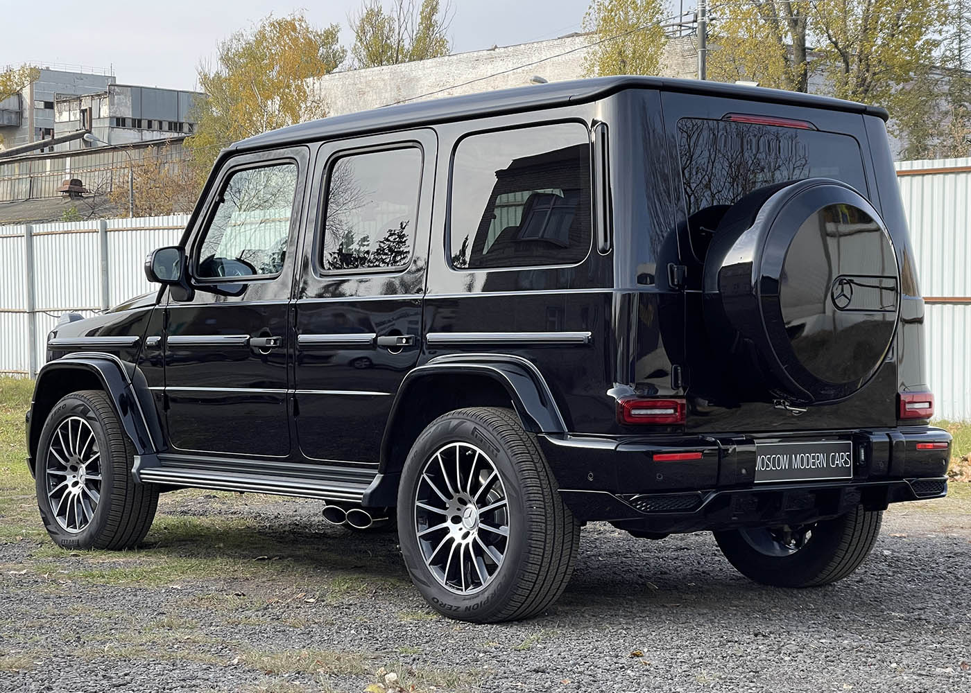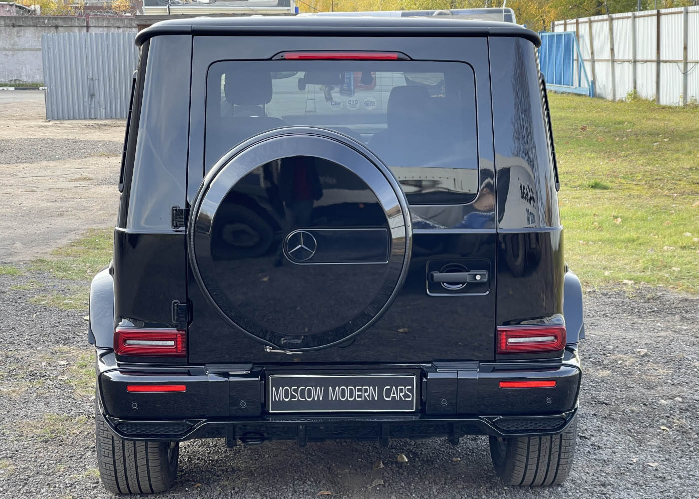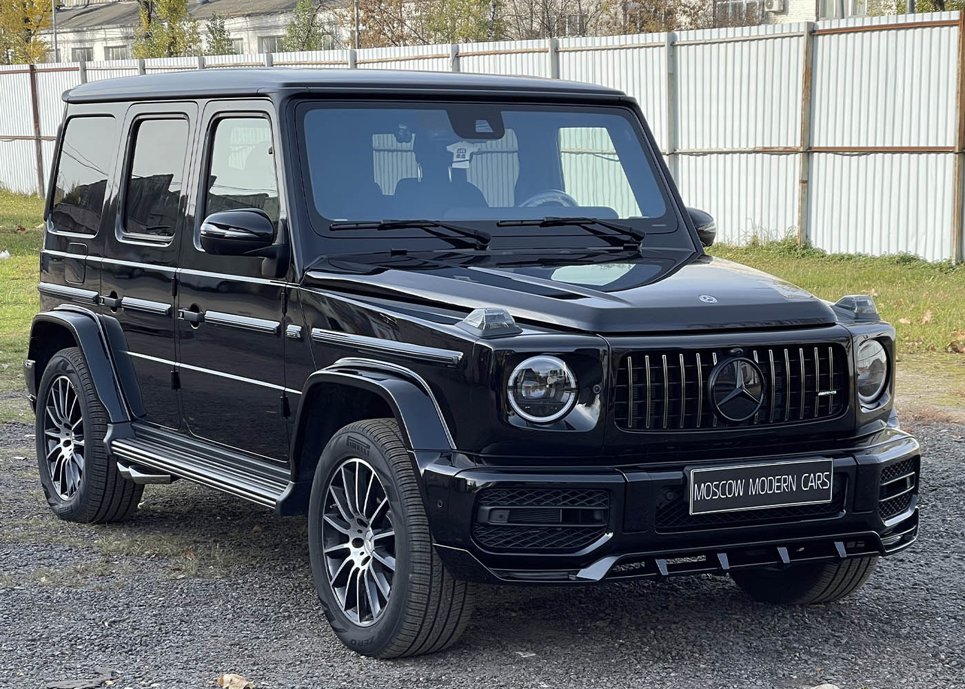 В первую очередь на этом авто мы зарестайлили морду под версию G63, а для придания большей индивидуальности, установили юбки GT-style на передний и задний бампера. Также сделали выхлоп на обе стороны машины и окрасили подножки в чёрный матовый цвет.