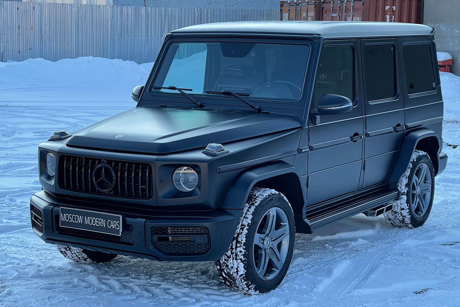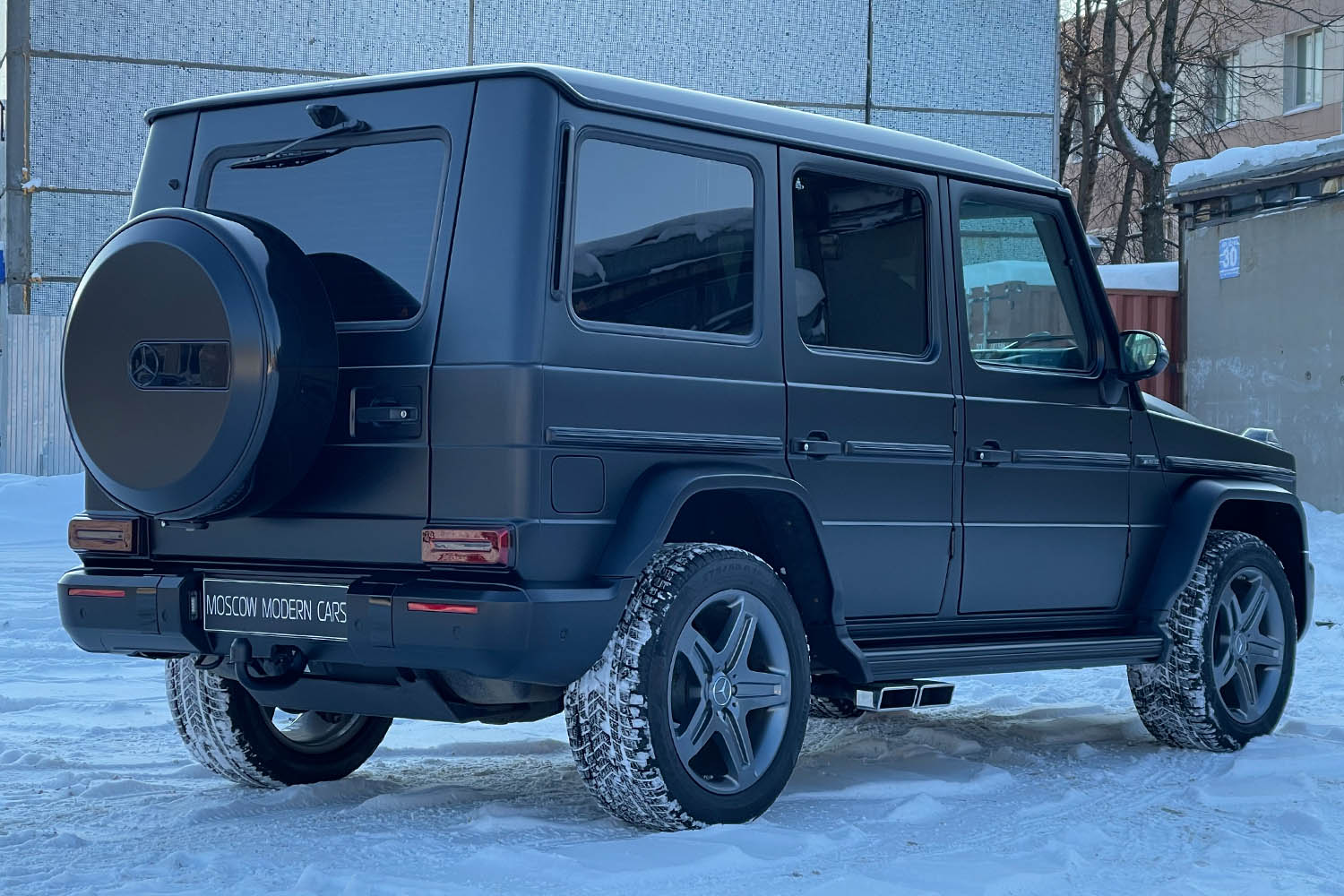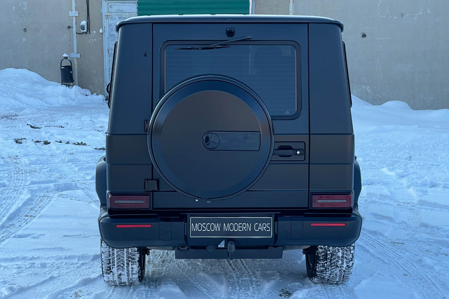 Внешний вид машины освежён при помощи комплекта кузовных элементов под стиль G63 AMG 2019 модельного года. Заменены капот, передние крылья, фары, решётка радиатора и маски фар, передний бампер и все расширители арок, наружные зеркала и молдинги по периметру кузова авто, а также задний бампер и задние фонари. Обратите внимание, что воздухозаборники на передних крыльях удалены, для большего сходства с новой моделью Гелендвагена. Для этого нам пришлось изменить впускную систему до воздушного фильтра. Чтобы максимально изменить стиль авто, было решено сделать автомобиль матовым и заодно защитить ЛКП. Для этого мы выбрали жидкий полимер, который образует съёмное плёночное покрытие при нанесении на поверхность кузова. Помимо внешнего вида, на машине установлена выхлопная система нашего производства, которая разводит газы на обе стороны авто, и на которой установлены насадки из нержавейки индивидуального дизайна. Вдобавок к выхлопной системе на машине отключена система Блютек и сделан чип-тюнинг. Благодаря отсутствию мочевинного нейтрализатора в системе, двигатель приобрёл звук выхлопа с негромким басом. Для улучшения управляемости, установлен комплект амортизаторов с электронным управлением от голландской фирмы Tractiv. Они позволяют максимально убрать недостатки архаичной подвески G-class предыдущего поколения и улучшить управляемость и комфорт.