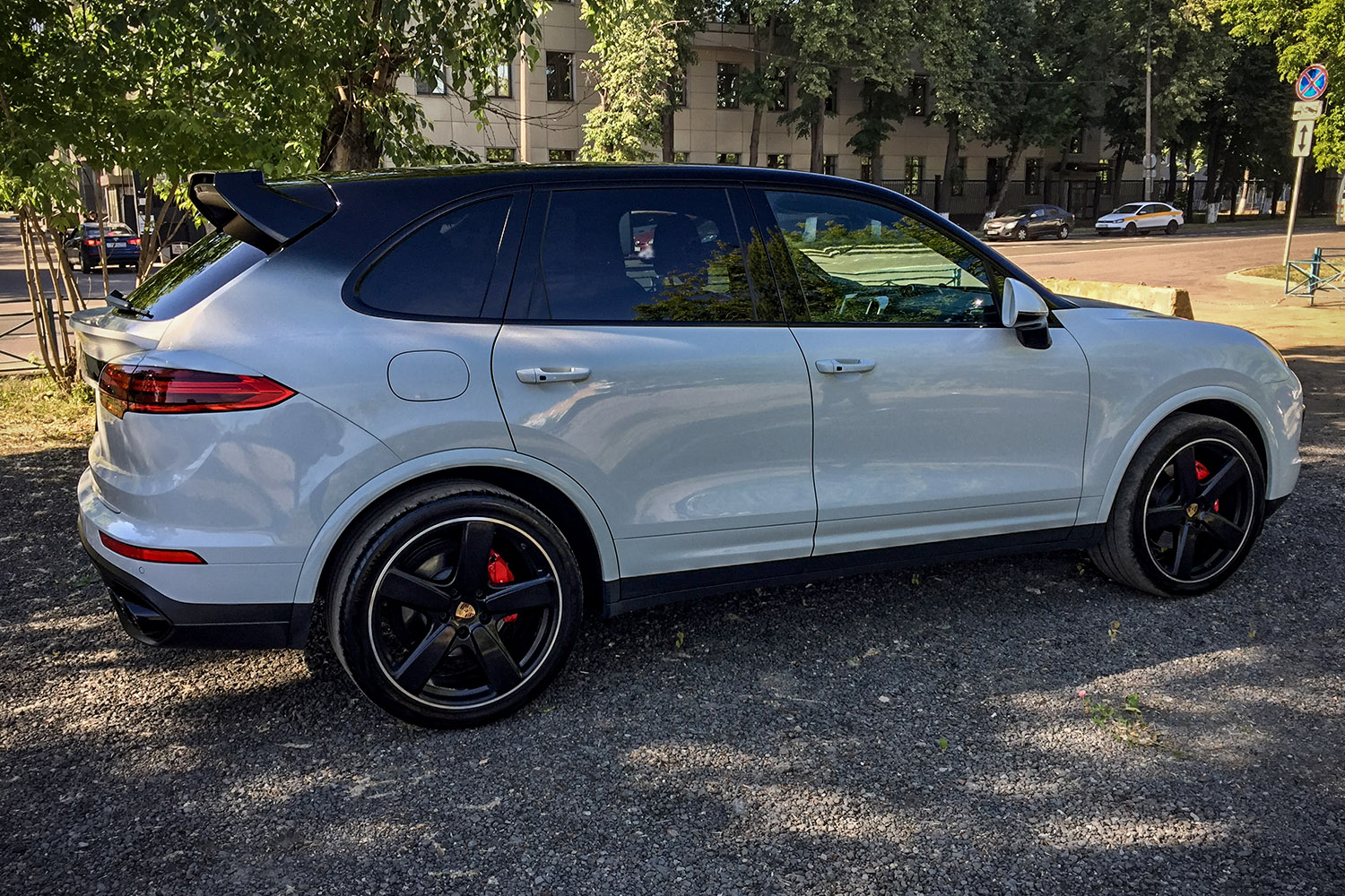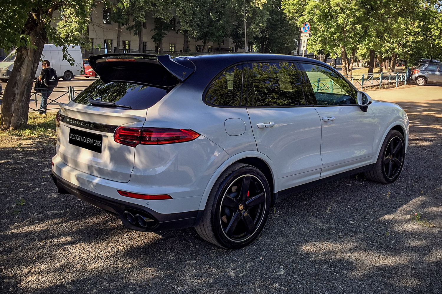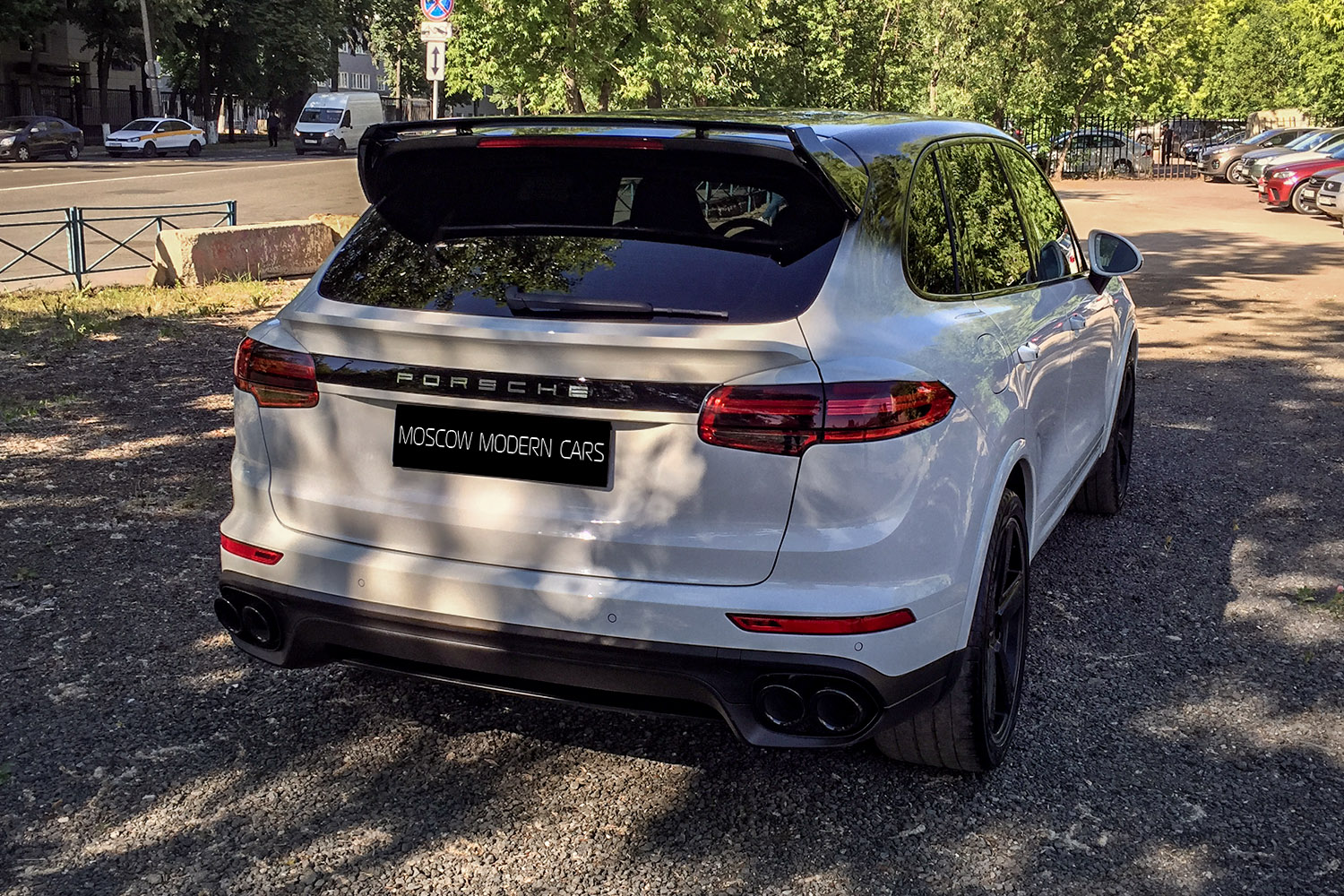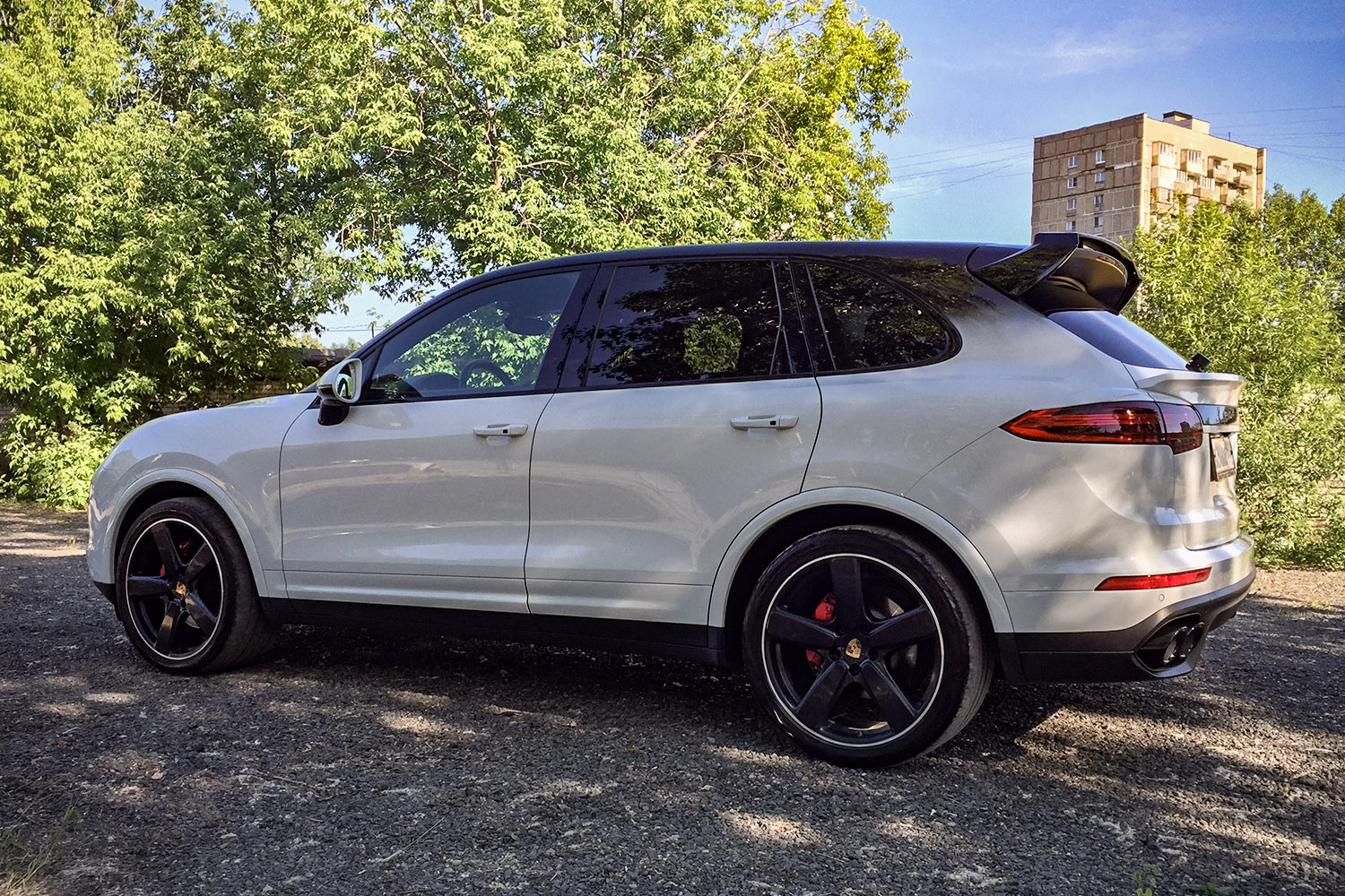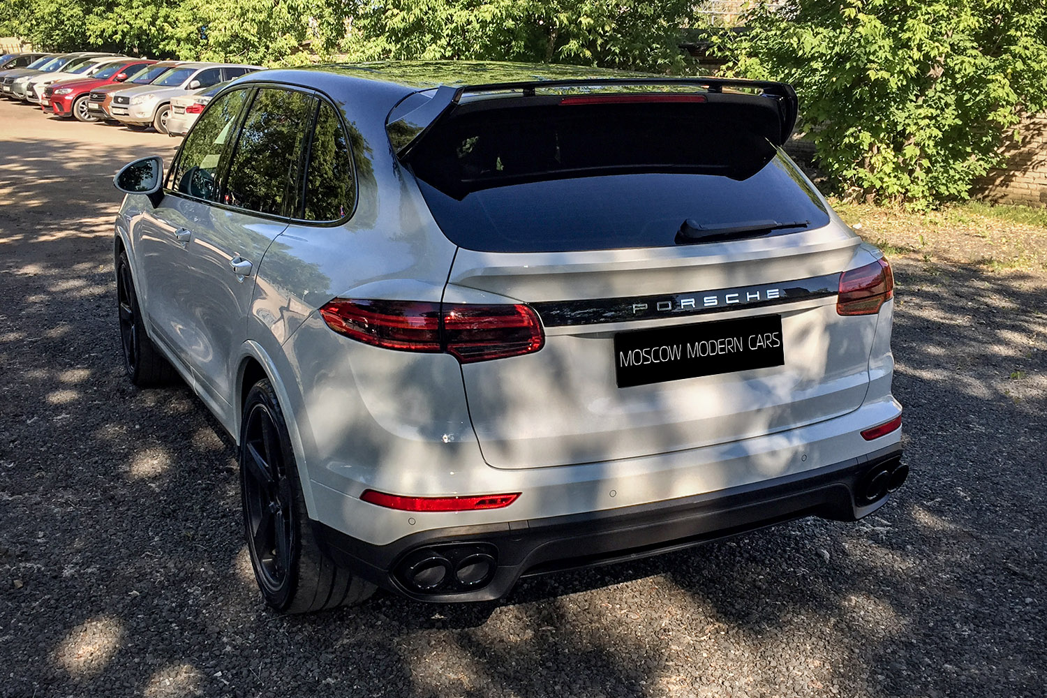 Этому рестайлинговому Cayenne в комплектации Platinum Edition мы создали привлекательный вид с помощью двухцветной окраски кузова. Чёрная крыша с плавным переходом на задних стойках отлично подошла к оригинальным колёсным дискам Classic design. Все решётки в переднем бампере и низ зеркал окрашены в чёрный глянец, а а на заднюю часть кузова установлены дополнительные элементы в стиле Techart. Индивидуально мы изготовили накладку с логотипом на крышку багажника и установили черные насадки от модели Турбо. Также был произведен чип-тюнинг двигателя.
