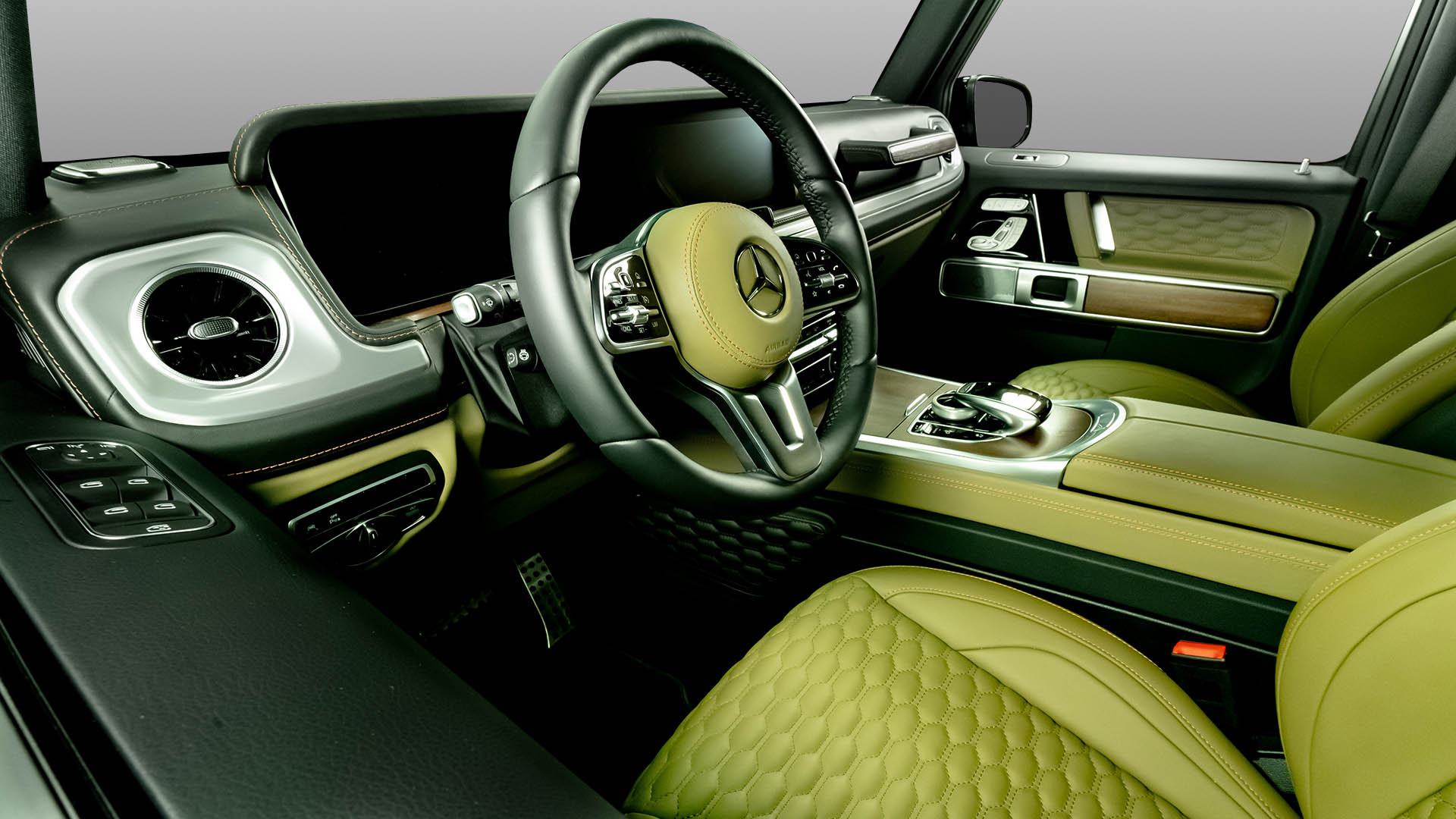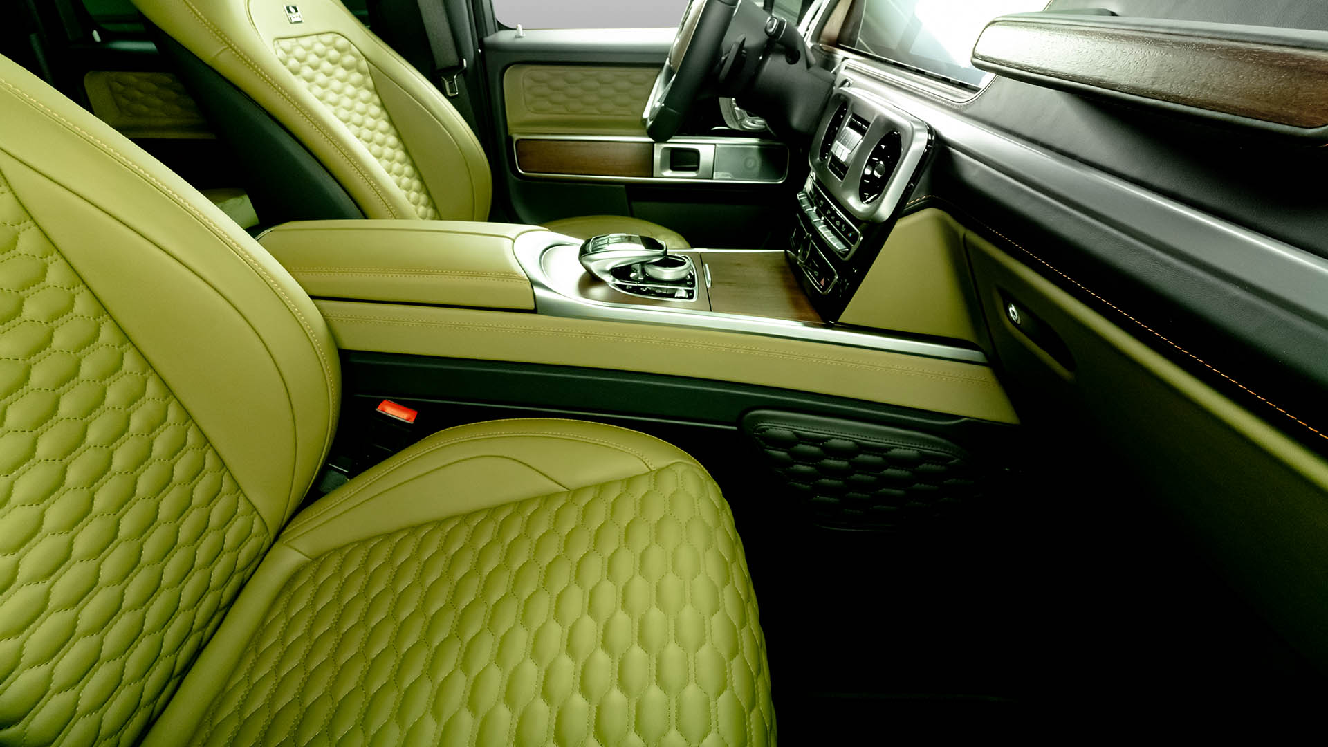 Внешний вид этого авто вы можете также увидеть в разделе "Наши работы". Под внешний вид с большим обвесом в B-стиле, мы и перешили салон кожей оливкового цвета. Стояла задача при минимальном вмешательстве, максимально изменить дизайн салона под B-style. Поэтому здесь перешиты только те элементы, которые максимально влияют на эффектность салона: торпедо, верх центральной консоли, сиденья и дверные вставки. Также, для контрастности, мы перешили подушку в руле оливковой кожей. Именно этот цвет идеально сочетается с цветом кузова автомобиля и деревянной отделкой его салона.