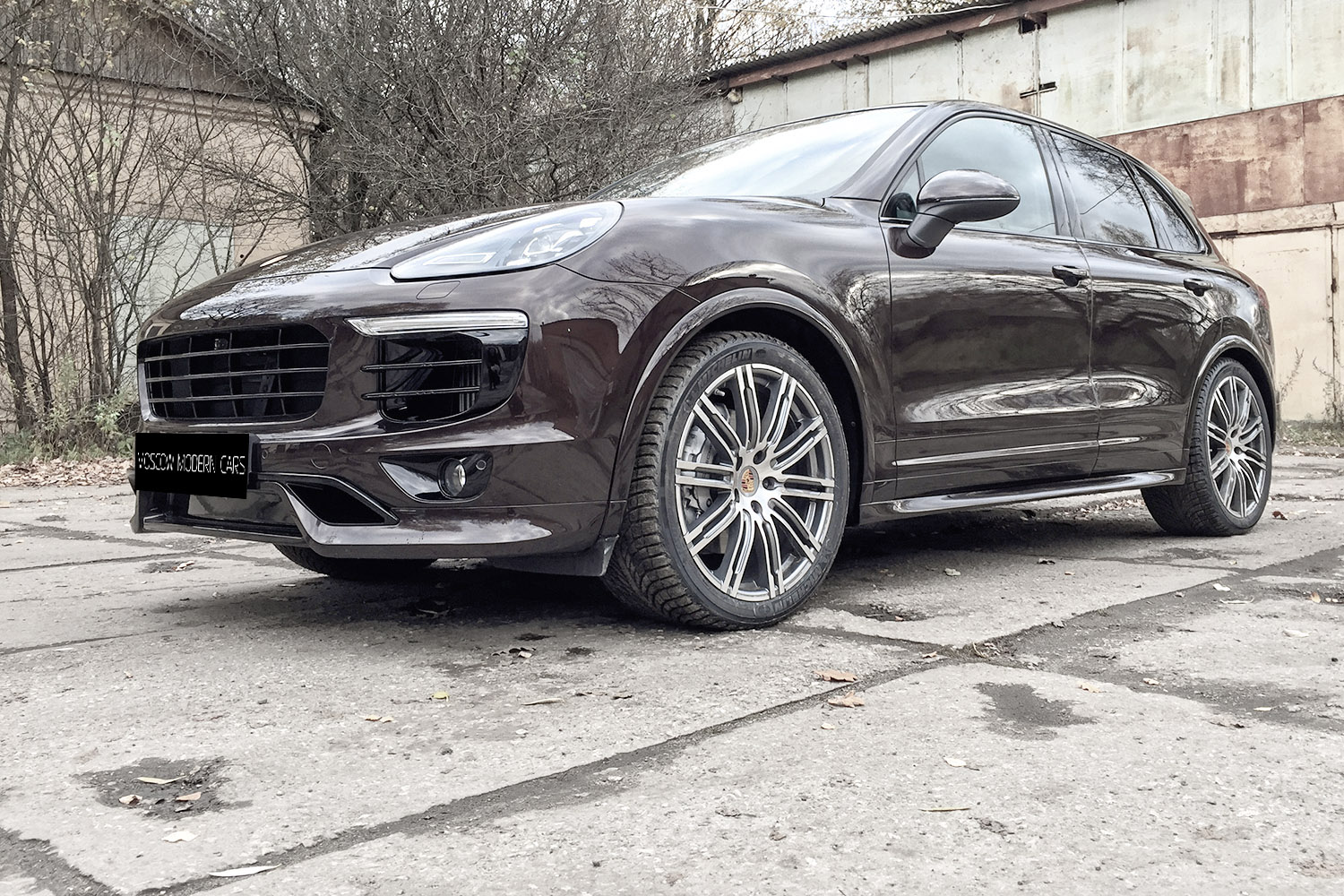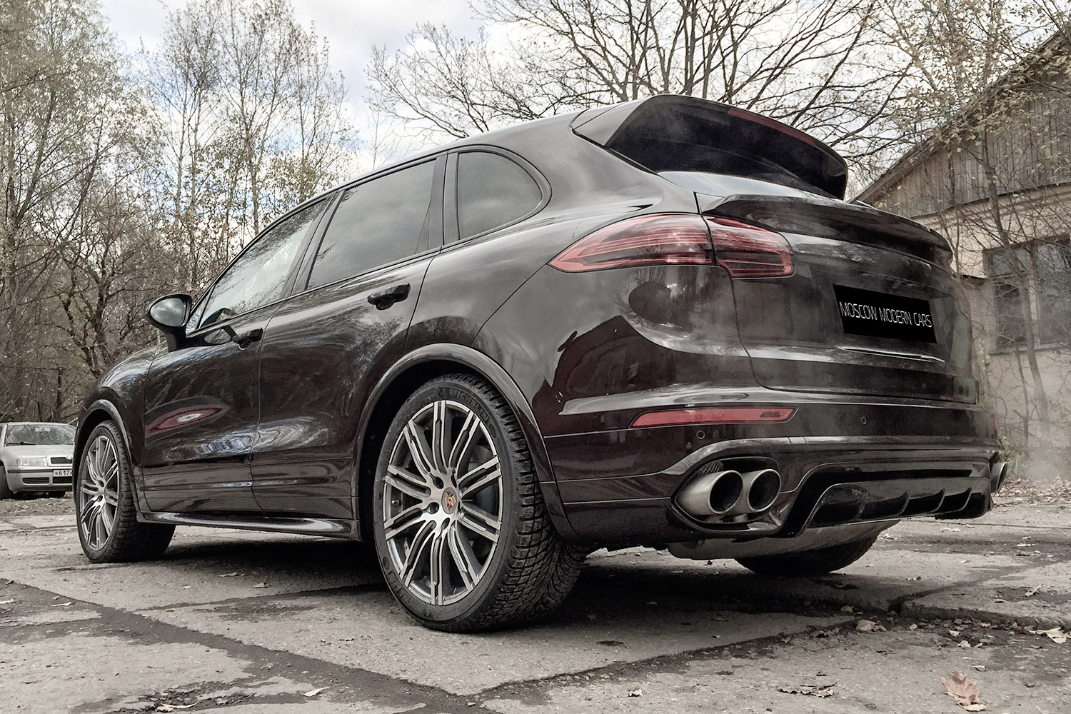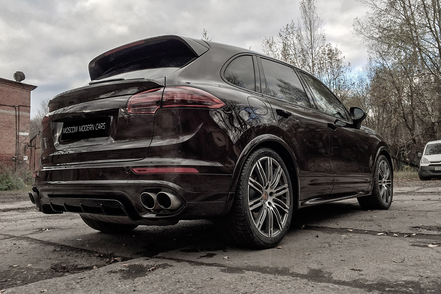 На автомобиле установлен комбинированный пакет аэродинамических элементов тюнинга от Techart и от модели GTS. Для изменения внешнего вида, на автомобиль была установлена передняя юбка Техарт СУВ для Porsche Cayenne 958.2 задний диффузор и спойлер на крышку багажника. Дополнительно, окрашены в красный цвет тормозные суппорты.